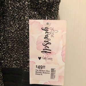 Boutique metallic bodycon simple sleeveless black dress with stretch and mesh mid waist. Brand new and ready for that special occasion in size XL