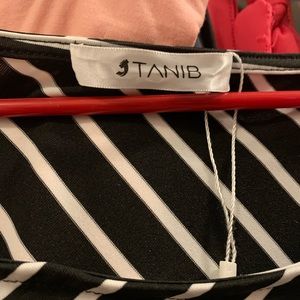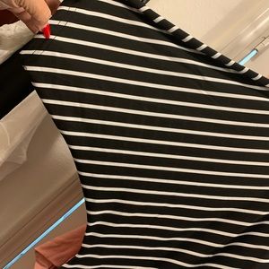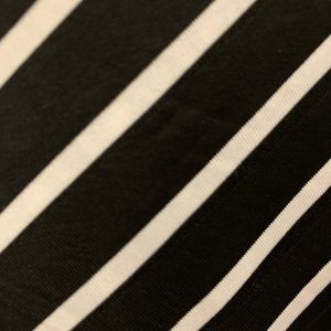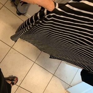 Beautiful light weight jersey knit black with white stripes very comfortable use one time splits on the side Long