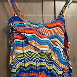Cute multicolored tank top dress. Cute ruffle going across on top.