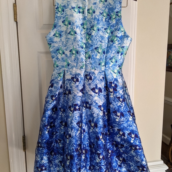 Lulu's Floral jacquard dress, size M 6-8, waist size 28"-29". New without tags. Fully lined, 100% polyester lining and dress. Hidden pockets.