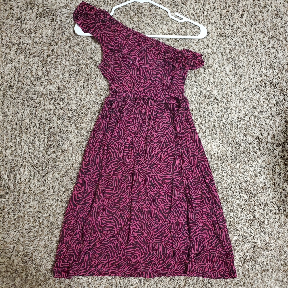 Zebra print wrap dress, one shoulder, size small