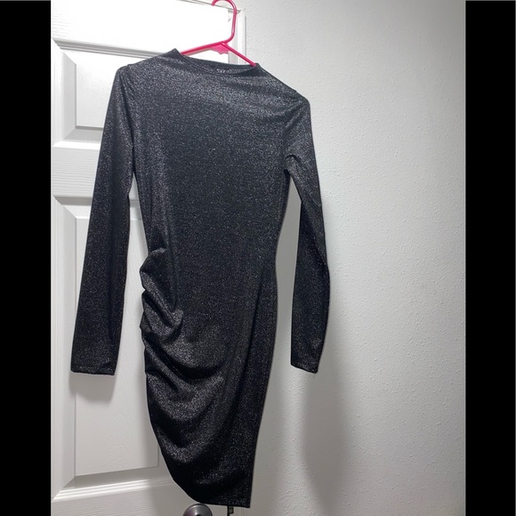 Black with silver mini dress Fits tight, above knee Right side scrunch Worn 1-2x