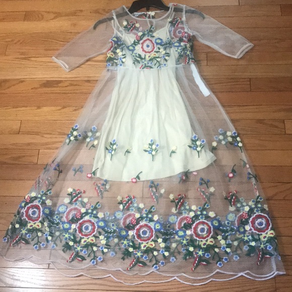 Stunning dress for a beautiful little girl with embroidery flowers. 3/4 sleeves, This is definitely a beauty. It has a zipper on the side for easy access