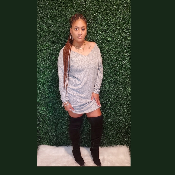 The Tiana Dress! This dress is here for the chilled weekend plans. It features a knit material, v-neck, long sleeves, and thigh-skimming length. Team with the dress a pair of boots for a simple but chic look that will still turn heads. Available in Heather Grey and Yellow.