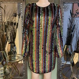 Multicolor sequence dress long sleeves low cut in the back