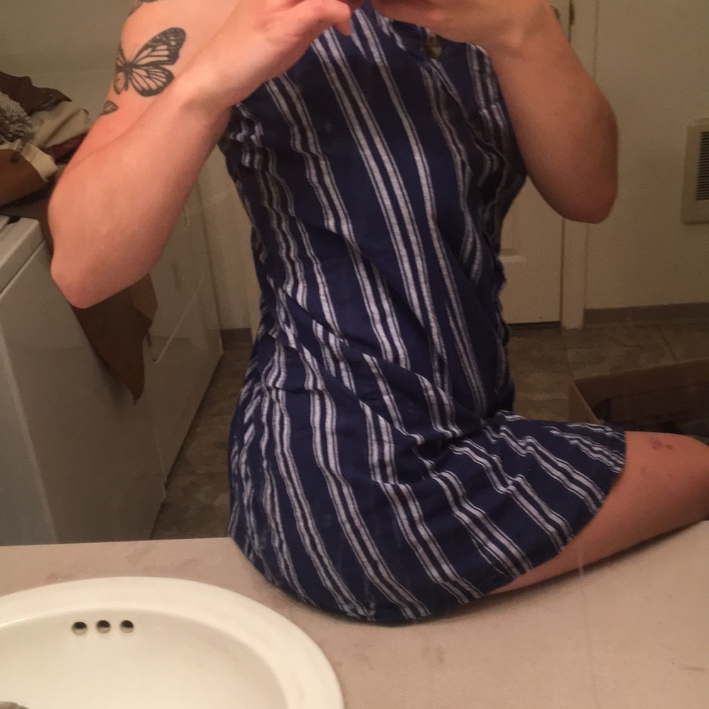 It’s nice and doesn’t hug your body! I only wore it for senior pics and that’s it! The buttons can come undone as well makes it super easy to put on and take off.