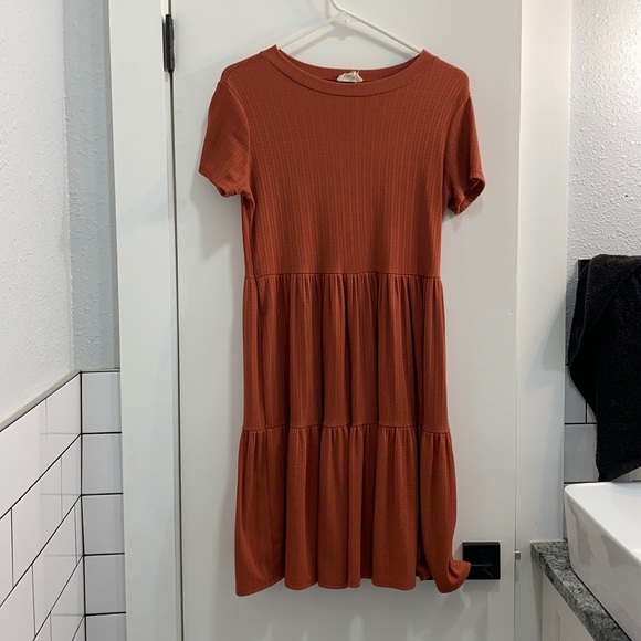 SOLD. Very soft, stretchy and comfortable fabric, burnt orange. In good condition. Works also as a maternity dress.
