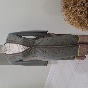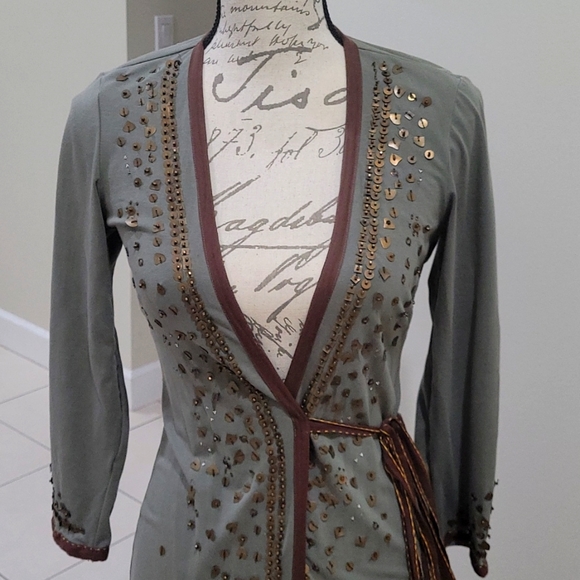 Super cute wrap around dress from a common thread . Has embellishments on sleeves and front of dress.
