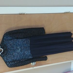 1960s Navy Beaded Long Sleeve Dress with pockets.