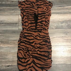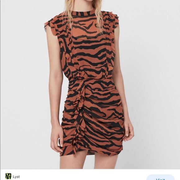 Nights out never looked so good. The Hali Dress is cut to a mini dress shape and decorated by ruffles at the shoulders and skirt in all-over zebra ...