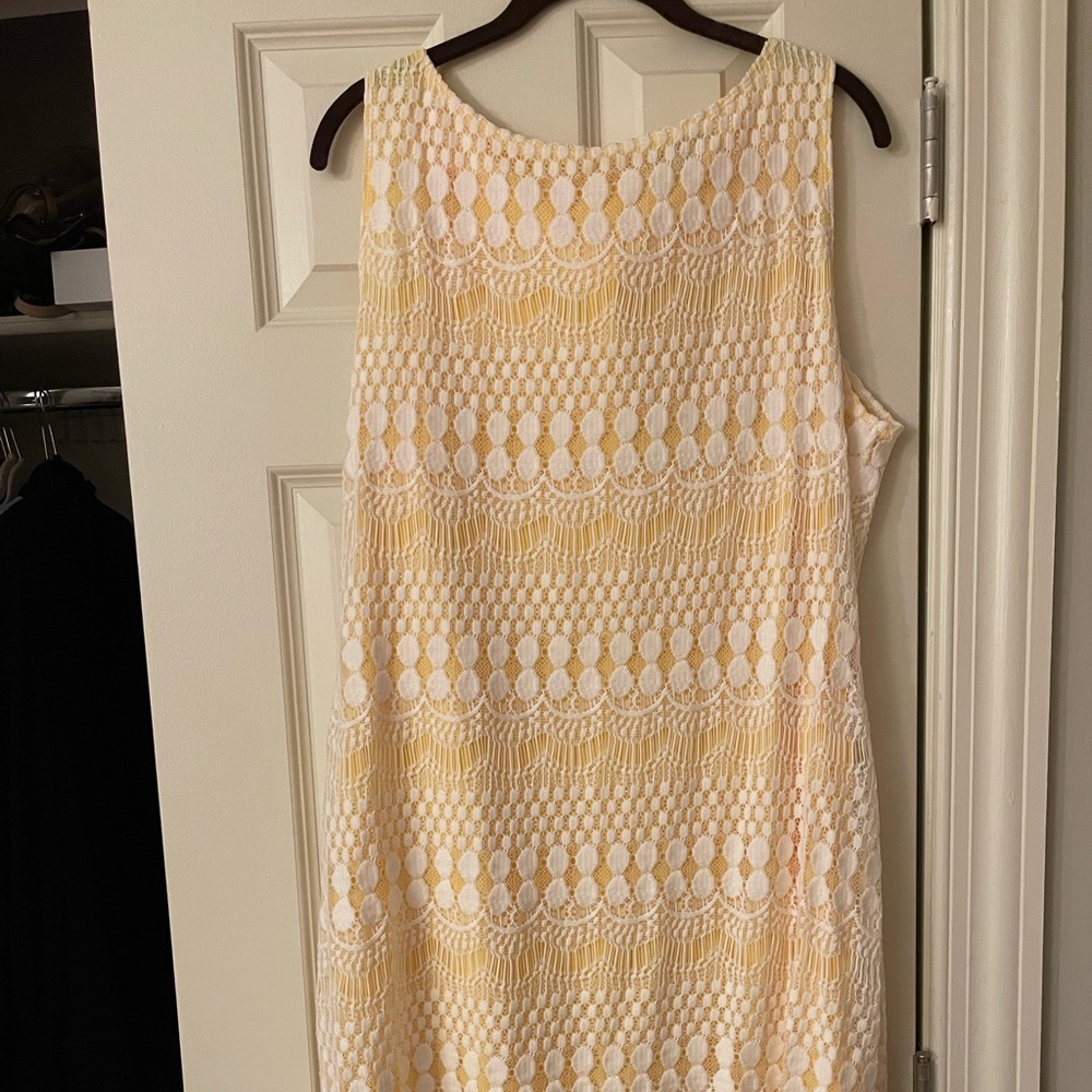 very elegant yellow and white dress. comfortable and easy to move in. only worn once!