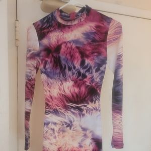 fashion nova spandex dress EXCELLENT condition worn once purple and pink zippered back small split at bottom of dress