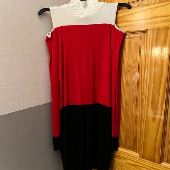 Sweater dress long sleeve red black white pattern new no tag turtleneck