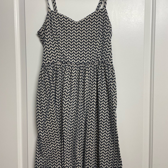 Womens sun dress size medium with pockets. Super comfortable spaghetti strap dress, above the knee length. Blue and white stripes. Good condition