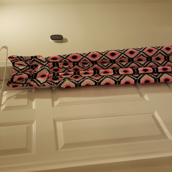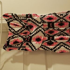 Strapless polyester black, white, and hot pink maxi dress with pockets! Great condition!