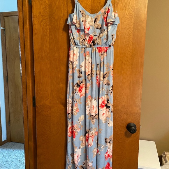 Light blue floral maxi dress with a slit. Size small.
