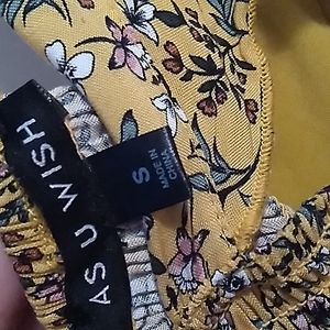 beautiful dress with floral print in yellow, short in the front and long in the back with dropped sleeves in the arms and padding in the bust part, it has elastic in the back. New(Size S)