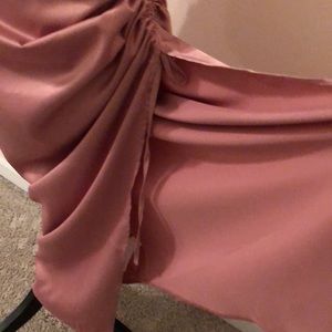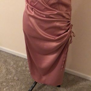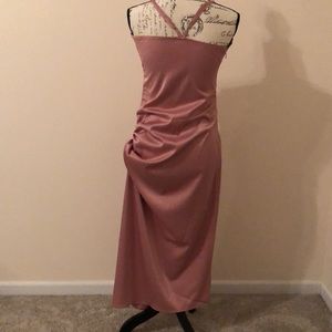 Dress never worn but took tags off thinking was going to keep. Color shiny pink.