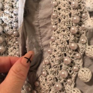 Super cute three tiered dress, crochet top with beads, needs to be ironed,, missing belt, third snap in front missing as well, dress is still very adorable, has adjustable straps