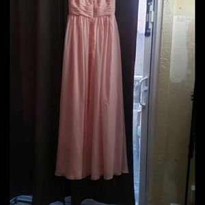 Long light pink dress with floral design on the upper front and back. The dress zips up in the back and is Made by DIYDRESSONLINE size medium. Never been worn.