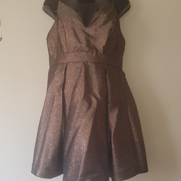 Such a cute fun dress from Fashion Nova, it's very flirty, I styled it with a blazer and bootie shoes. It fits a little tight around the waist and flares. Color is like a metallic/bronze.