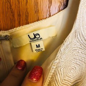 Hi the dress was worm once. It has a design and when you look at it is is kind of goldfish. Not sure how to send you extra pictures on here. Let me know I will send you a bunch