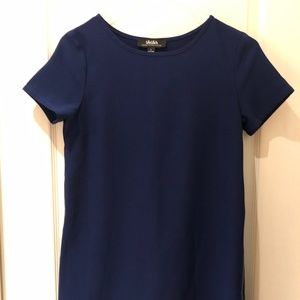 Dress - can be dressed up or down. Statement silver zipper on sides. Round neck. Stretchy material.