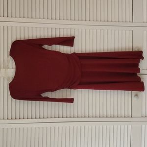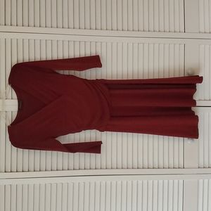 Burgundy, mock-wrap dress. Comfortable, stretch fabric. Size 2-4. Great for work or play!