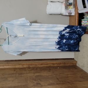 blue tiedye dress never worn knot at bottom left front