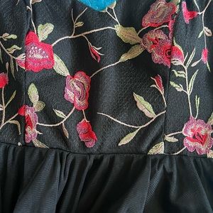 This dress is beautiful is black with embroidered red flowers on top and bottom size is puffy
