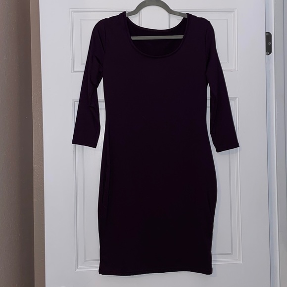 Casual fitted dress. 3/4 length sleeve, super soft material with fleece like material inside, dark purple in color. Worn once and in great condition.