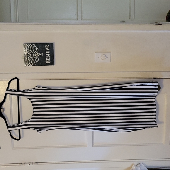 Fun! Dress. Black & White Striped. Bought for Sporting🏅🏈🎯🥅 event as referee. Silky and Stretchy. Fits loose. Thin material but not see through 👗🏈😙