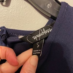 Navy blue and white above knee dress