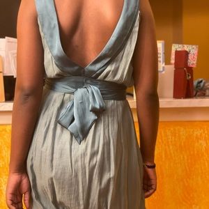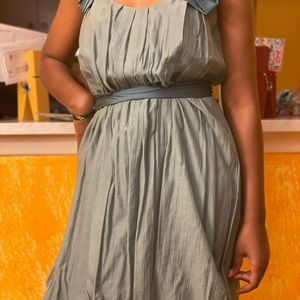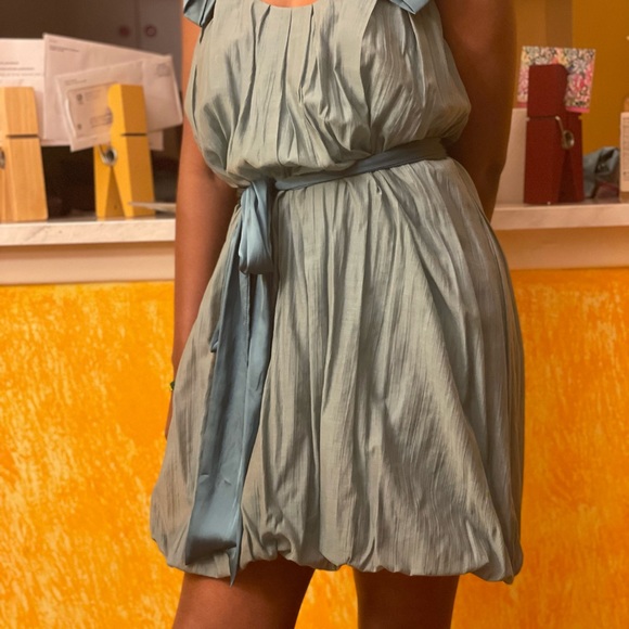 Ballon dress. The color is light green, the material pleasant to wear. The dress adds value to your back.