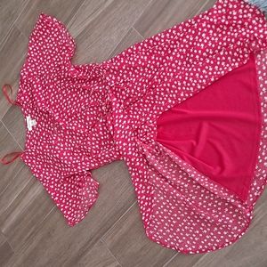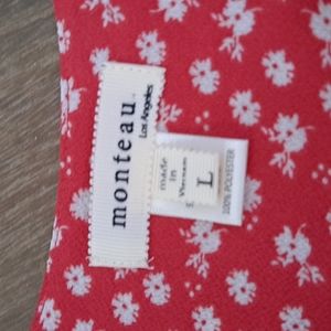Wrap style red dress with white flowers-never worn-perfect condition made by Monteau/Los Angeles