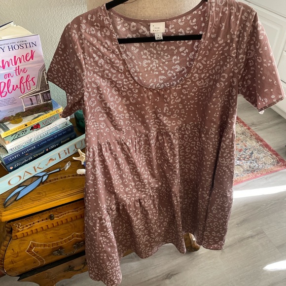 It’s so lovely on!! Empire waist and short sleeves with a flowy hemline!!