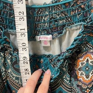 Floral and pattern dress long sleeve sheer sleeves but the torso and bottom part of dress has double layer not see through. Size XS no pulls no rips no stains