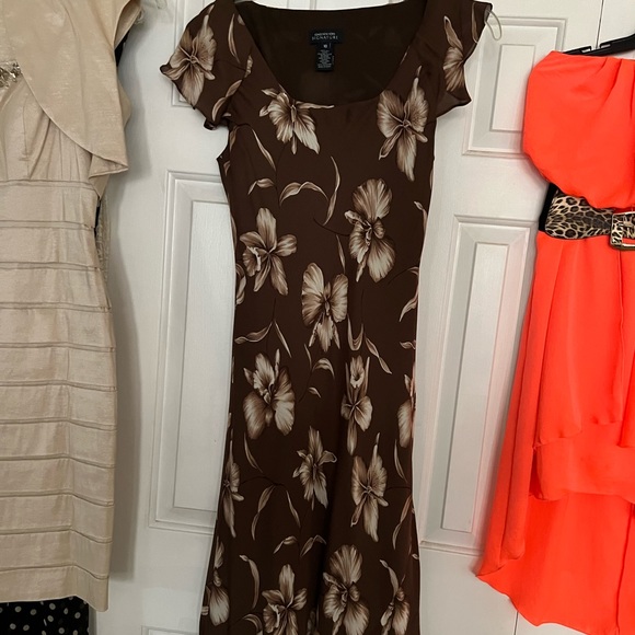 Beautiful brown dress falls right below the knee size 10 worn a couple times
