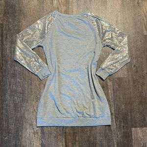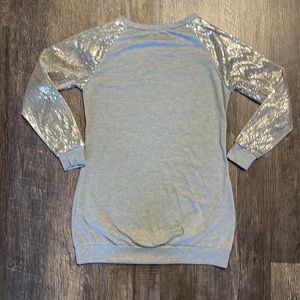 For sale is this sweatshirt dress, with beautiful sequin detailing on the sleeve. Item is in New condition, having only been tried on. Fun piece to pair with a pair of heeled booties, or dressed down with sneakers.