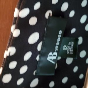 AB studio shift dress. Black/white polka dots. size 12. I'm 5'1 and this comes to just below knee. dress has stretch but not enough...I outgrew.