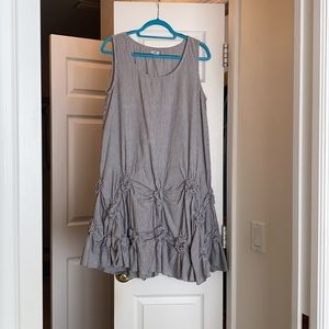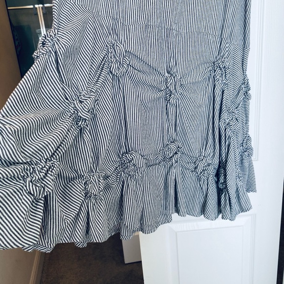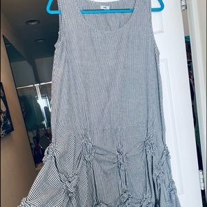 Lovely 100%cotton pinstripe dress with puckered bottom flounce