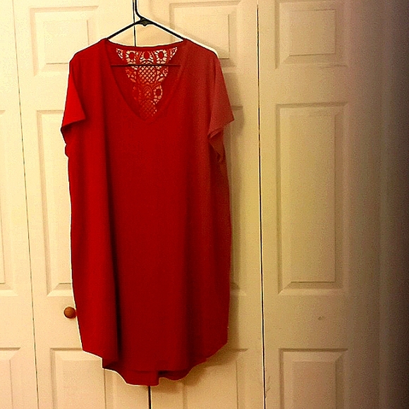 Livi dress. Burgundy color size 22/24 Embroidery on the back..pockets on the side... polyester, spandex, rayon material