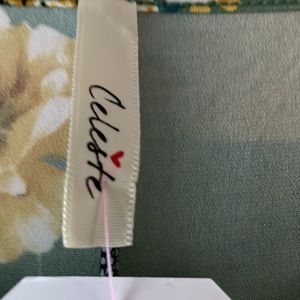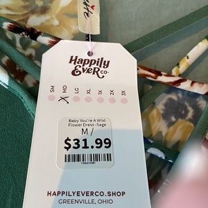 Green floral dress with three quarter length sleeves. SzM. Fit me great as a Sz. 12. It’s a Celeste from one of my favorite boutiques. Looks nice with sandals but also looks great with boots!!!