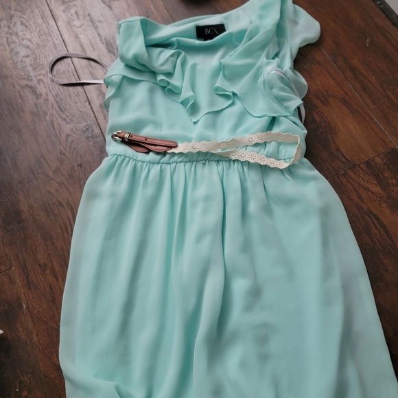 Mint colored summer dress. Worn once. Has a ruffle neck. Pet friendly house, smoke free home