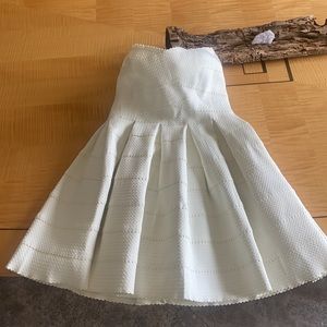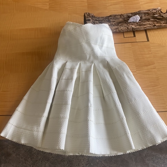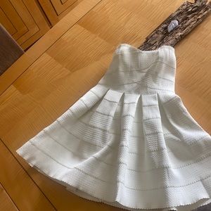 Gorgeous dress in the brand new condition, bought in Nordstrom. It can be dressed up or down with denim jacket, either way u will look incredible. It has elastic around the chest area to make sure it stays on. The color is off white, the only choice was white, so I chose it.