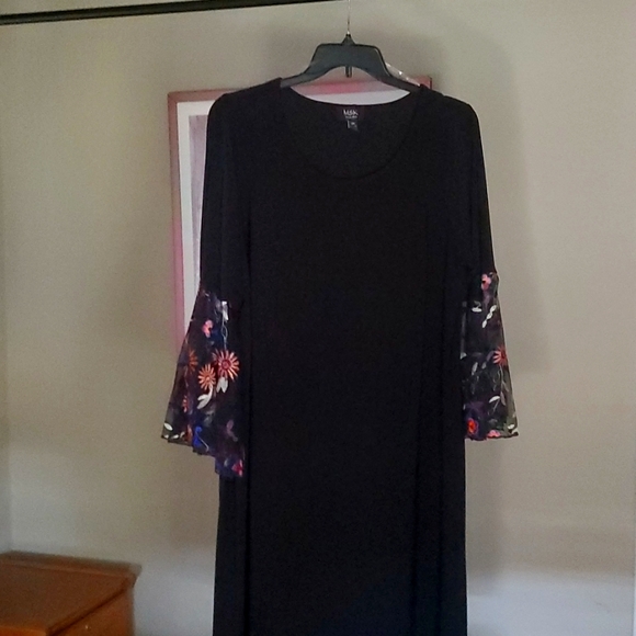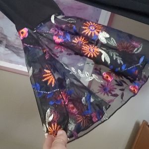 only wore once. Black dress with vibrate flowers on ends of sleeves