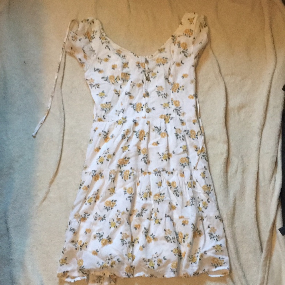 Size xs from hollister. White short sleeve dress with flower print. Bundle any 4 items and get it for $20 ✨💫