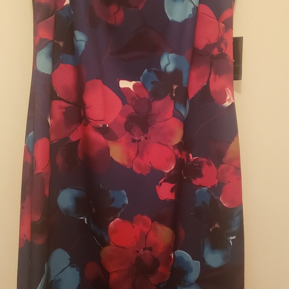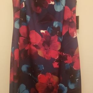 multicolored sleeveless dress, knee length, zippered, all weather