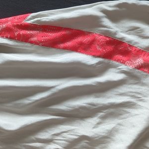 silver with hot pink lace trim. like new