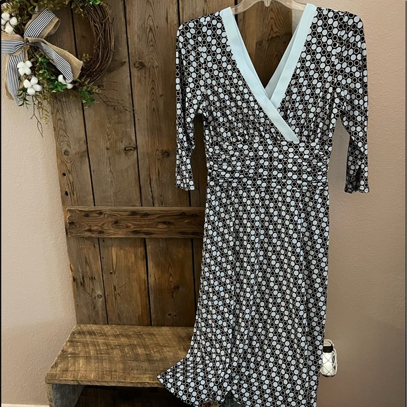 Dress by Sandra Darren, 3/4 sleeves, V neck, linger length-past the knee, size 14